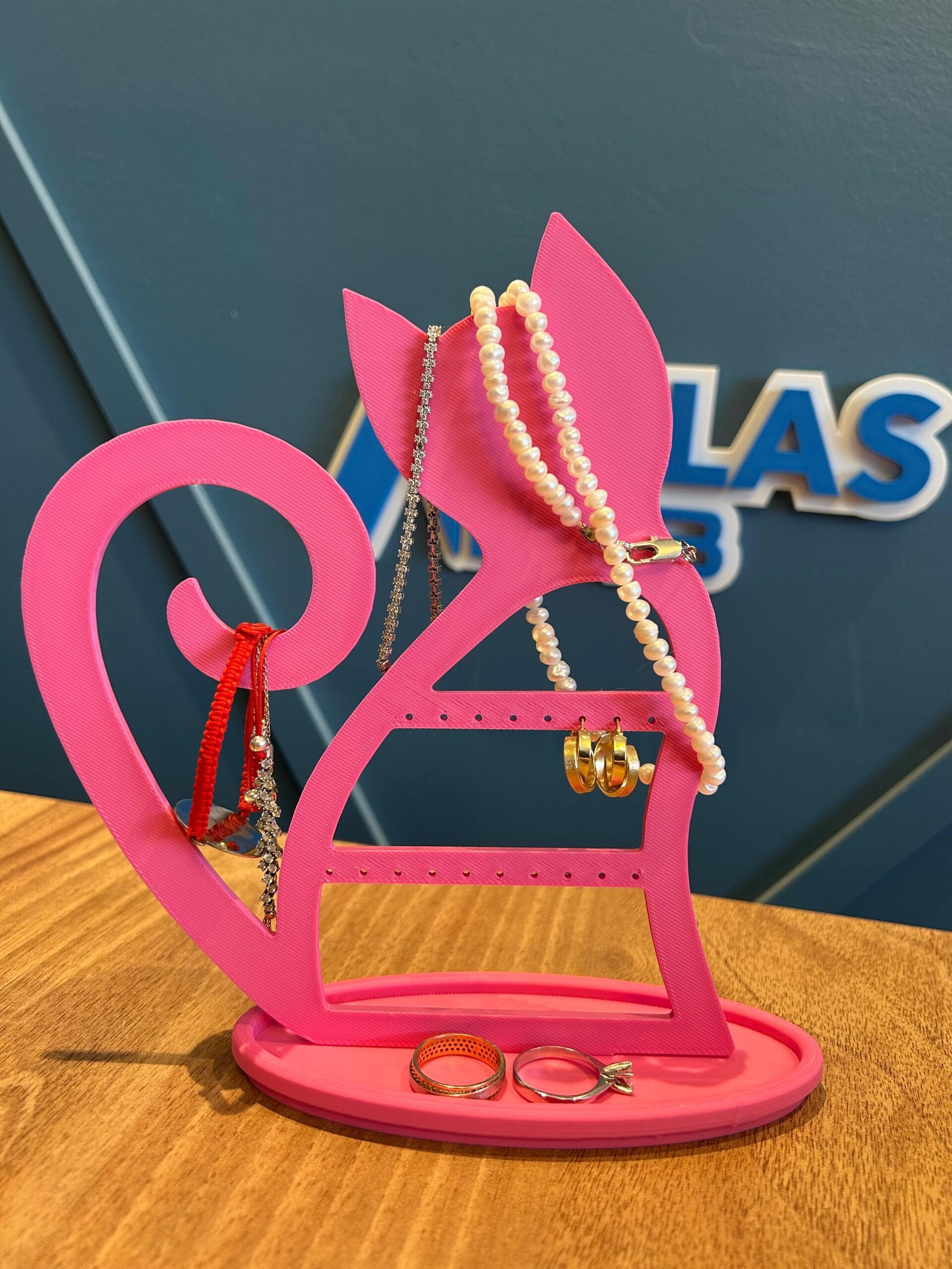 3D baskı teknolojisiyle PLA malzemeden üretilen bu özel tasarım ürün, küpelerinizi, yüzüklerinizi ve kolyelerinizi sergilemeniz için estetik ve kullanışlı bir çözüm sunar.
